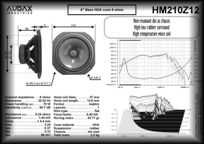 bass-mid driver: HM210Z12, aerogel 8'' cone by Audax,