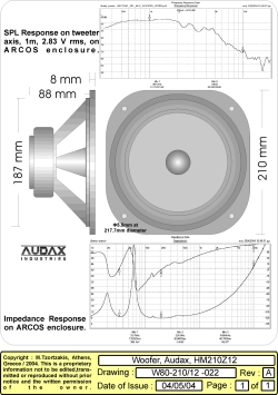 At that time (early 2004) MTZ Audio staff decided to select the popular aerogel cones of Audax drivers for these difficult tasks. Arcos was designed after the 8'' HM210Z12 driver.